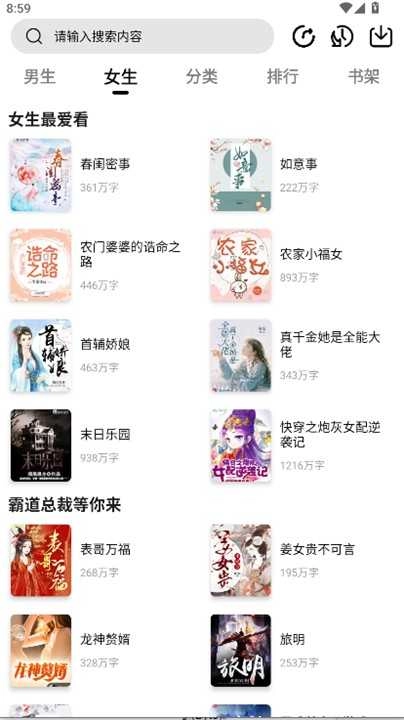 4、轻点“女生”分类,便能迅速浏览专为女性读者推荐的小说内容。