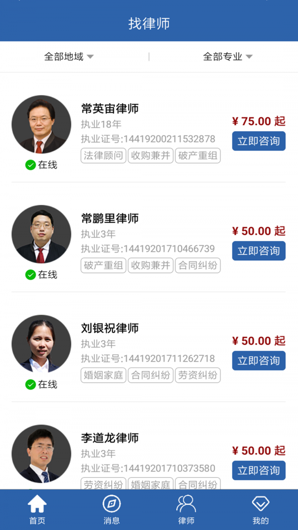 国内着名律所律师齐聚常盛法宝app,严选执业律师,平台双重认证,全方面把关,确保咨询是专业服务水平;