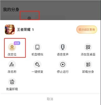 4、接着,长时间按住王者荣耀图标左上角的齿轮,这时会弹出菜单框,点击其中的修改定位选项就可以了。