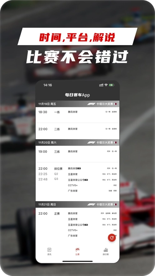 1. 从专业视角出发,为用户提供专业且权威的赛事与赛车资讯。