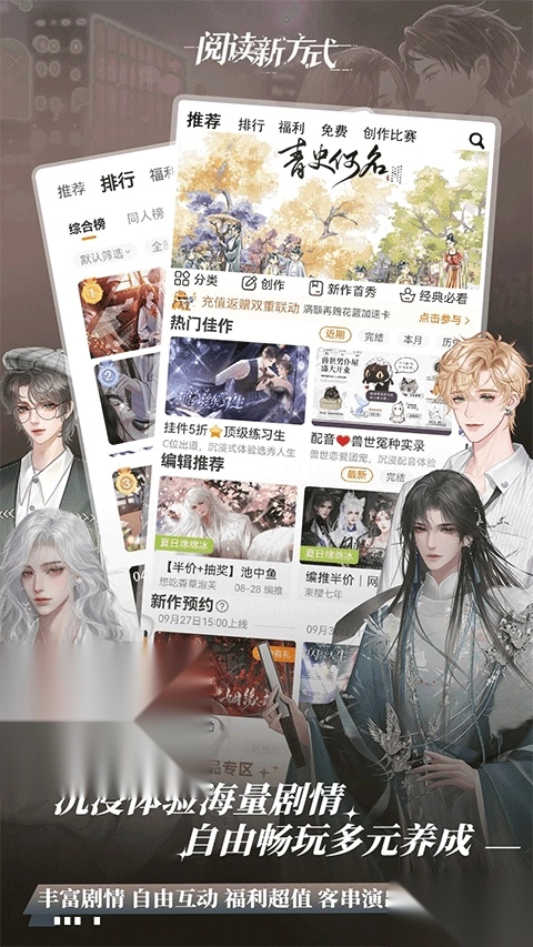 采用创新互动阅读模式,剧情走向由你决定,多结局设定让每次选择都充满未知。还能与作者直接交流,甚至有机会化身故事中的角色,亲身参与剧情发展。