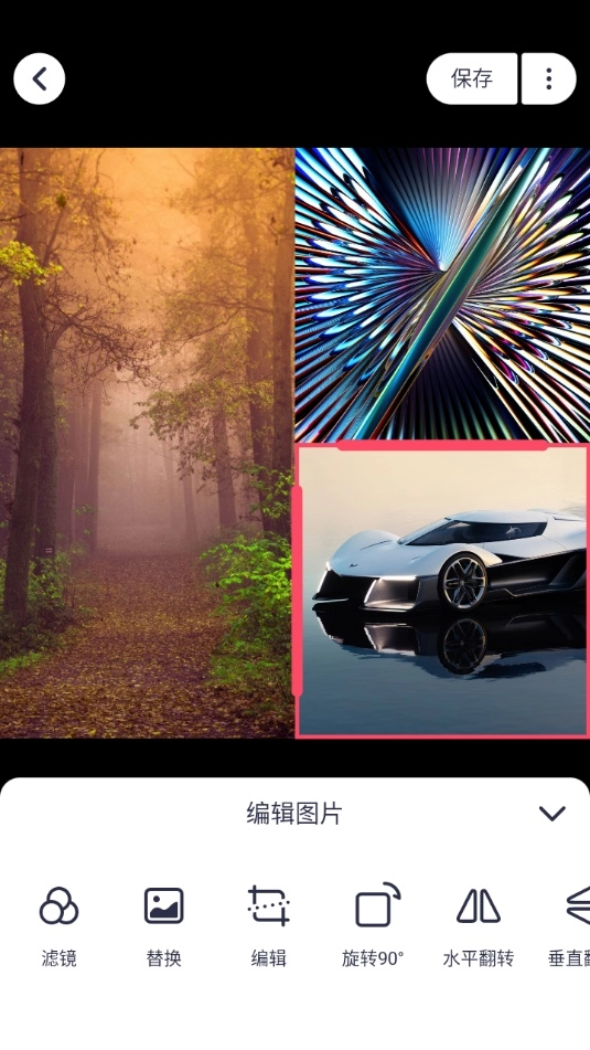 4、点击拼图中的图片,可以单独对图片进行编辑、添加滤镜等操作,选中图片后可以拖到其他图片上进行位置交换