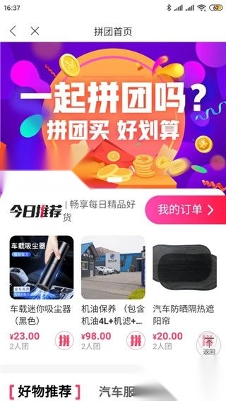 2、点击拼团按钮,可以在线拼团,优惠购买各类汽车零配件