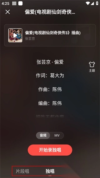 4.根据需求选择片段长、独唱或者合唱之后点击开始录制;