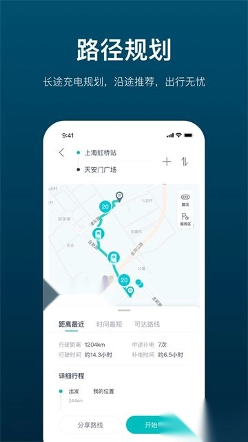 1. 自动规划长途路线,依据车辆续航里程以及常用充电偏好,制定个性化的出行补电方案。