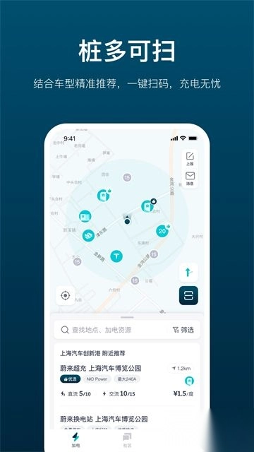 4.u200c精准推荐空闲桩位u200c,根据距离、功率和评分自动筛选充电桩;