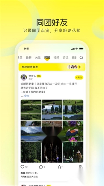 3. 通过图文动态分享旅途的点点滴滴,采用类似朋友圈的模式,吸引志同道合的人一起交流旅行经验。