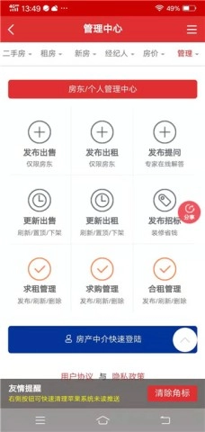 5、 进入管理中心,即可发布各类房产需求,方便快捷。
