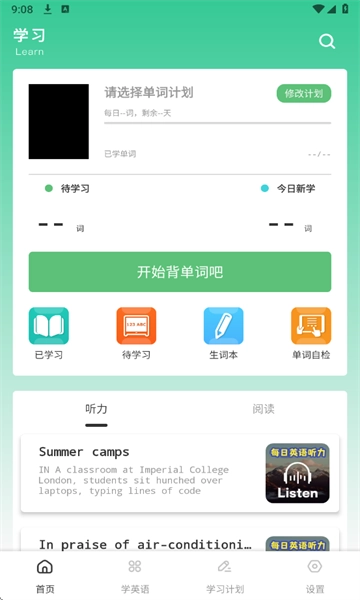 3、众信口语开启学习后,能够开展单字、听力、阅读等模块的教学。