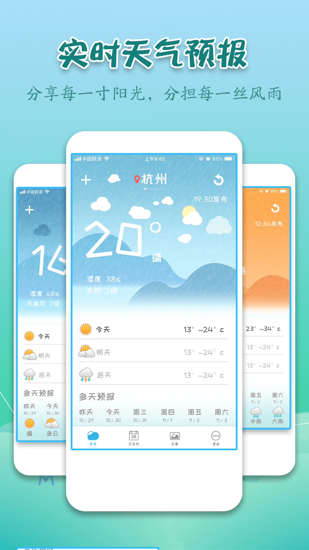 【逐小时天气预报】轻松查阅24小时内天气变化,提早预防早晚温差过大;