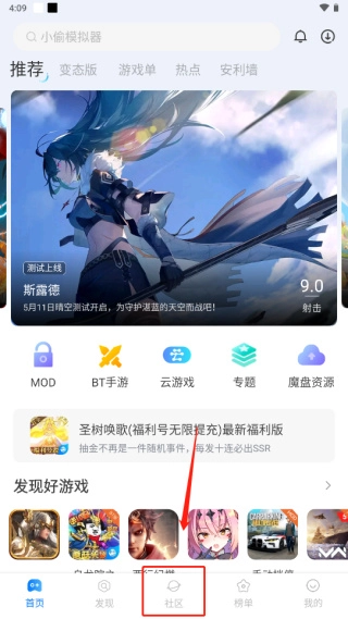1. 开启游戏盒子,接着点击“社区”