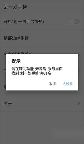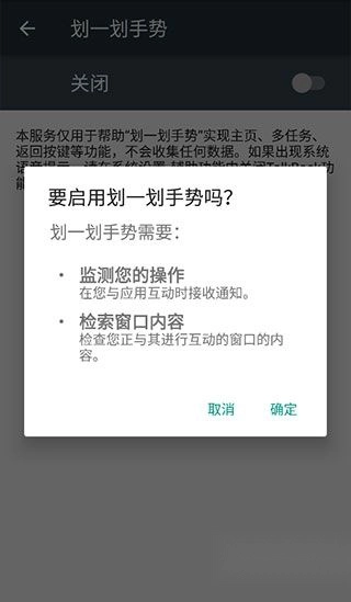 3、进入系统的“无障碍”选项,从中找到“划一划手势”,开启其开关,接着点击“确定”。