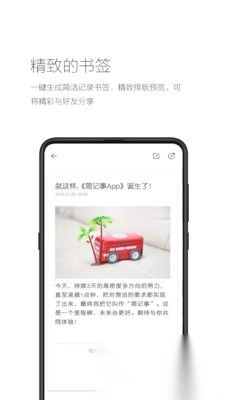 根据编写好的文字内容,制作出精美的图片书签。无论何时何地,你都能把排版后的文字图片分享给你的朋友。