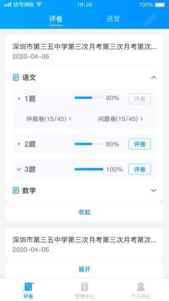1. 评卷中心运用可折叠式试卷列表的设计,只需一键就能切换状态。