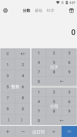 1、于本站完成安装后,点击进行打开操作,此时界面上会呈现整数、分子与分母的输入区域,还有运算符。