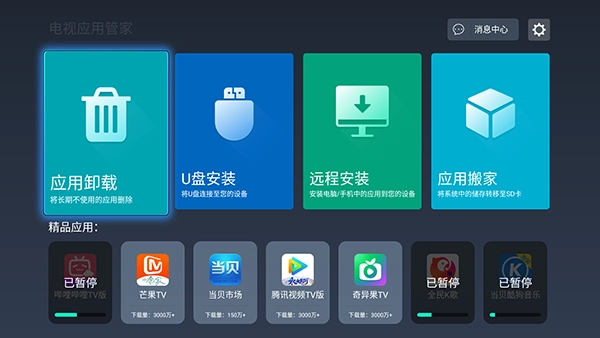 电视应用管家,一款专为智能电视量身定制的应用管理利器。它致力于简化应用的安装与更新流程,同时还提供海量影视资源、各类游戏以及实用工具,使用户能便捷地找到所需应用。欢迎有需要的朋友使用!