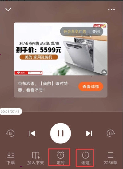 5. 在听书的设置界面,能够针对朗读声音、语速以及定时等功能展开设置。