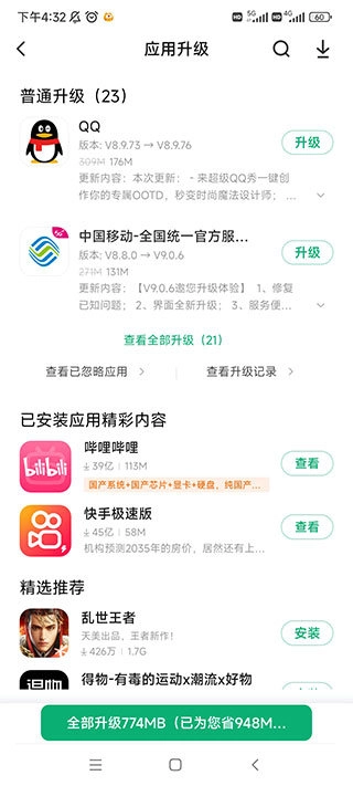 2、要是你想查看手机上的应用,并将其更新至最新版本,仅需点击“应用升级”选项。