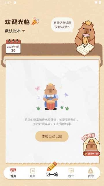 2、进入软件后,点击下方“记一笔”。