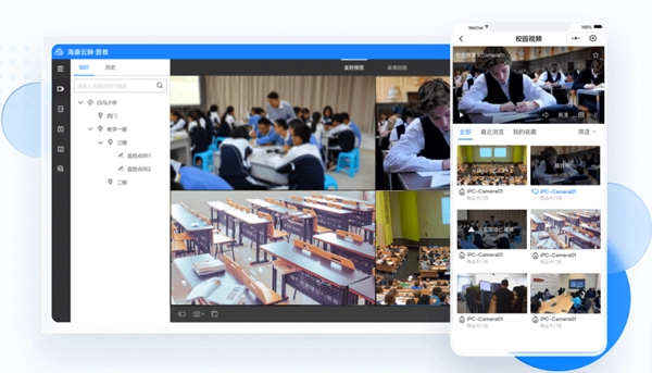 多终端实时预览、云台控制,提高巡查的效率和针对性;多级联网、自定义人员权限配置,统一管理更便捷,局、校、家端同时联动;智能报警、设备联动,安全问题响应更及时。