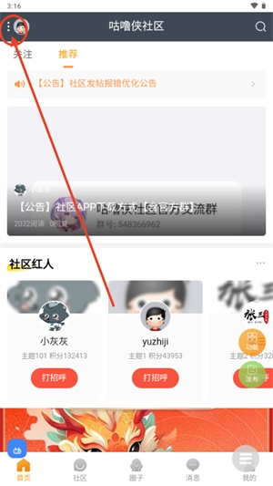 1、先安装咕噜侠社区,安装完成后打开软件的主页。
