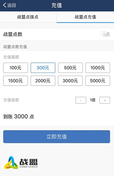 充值前请务必确认您的充值帐号,充值成功后战盟点将会正常发放到您的余额中。