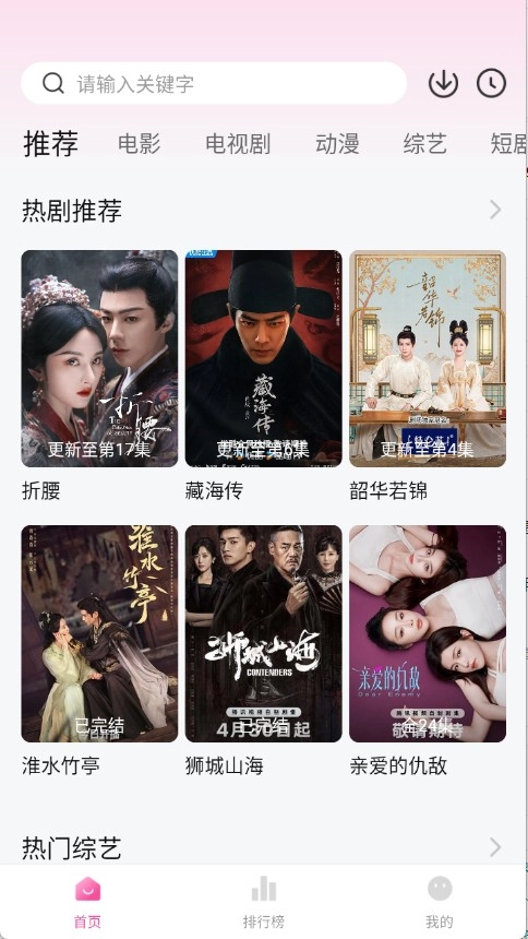 2、在首页页面,顶部栏里能看到众多影视剧集,涵盖电影、电视剧以及综艺等。