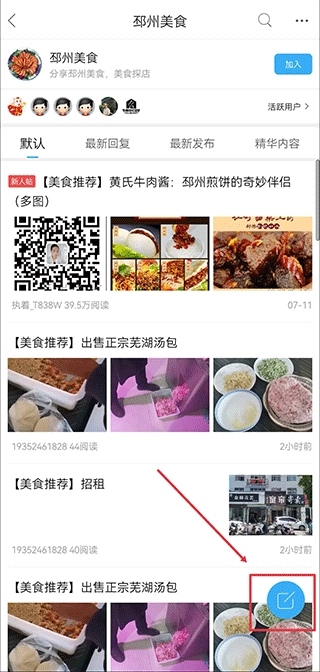 3、进入之后,同样点击右下角的蓝色图标,对帖子内容进行编辑然后发布。