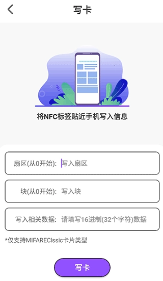 2、接着再次回到“NFC读写”这一栏,找到“写卡”并点击,随后依照要求提示完成写卡操作。