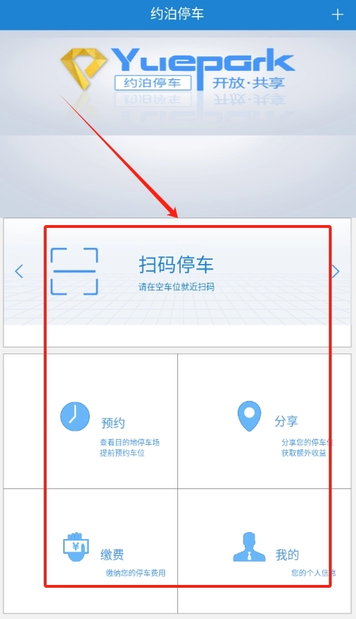 3、登录后能扫码停车、预约车位、分享功能或缴费,按需操作就行。