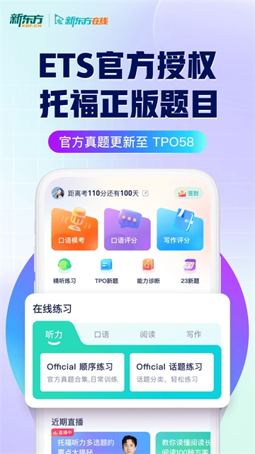 新东方托福Pro,是一款专为有考托福需求的用户精心打造的学习备考软件。软件内有海量练习模拟真题,还设有听力、阅读练习模式。用户只需依据自身薄弱环节,就能轻松找到各类题目。无论你处于何种学习阶段,都能在这里找到所需的练习模式。
