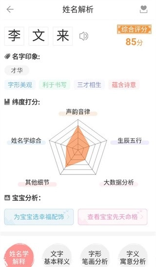 【测名解析】自己起的名字,也可以进行测试解析和打分,方便父母选择;