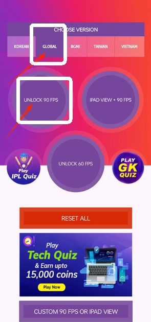 用户打开应用后,可点击“GLOBAL”选项,随后选择“解锁90FPS”功能。