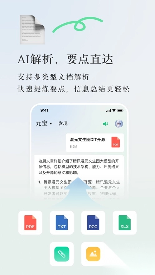 腾讯元宝具备丰富的智能特性,涵盖AI解析功能,能够对多种类型的文档进行解析处理,迅速提取关键要点并归纳文档等内容的核心信息;同时拥有AI搜索能力,可用于查找答案、资料等各类内容,信息覆盖面广泛;此外,它还提供AI创作支持,能够完成报告撰写、方案制定、代码编写等多种任务。