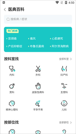要是觉得上面的操作比较繁琐,也能借助搜索框,通过搜索和疾病或症状相关的词汇来找到。