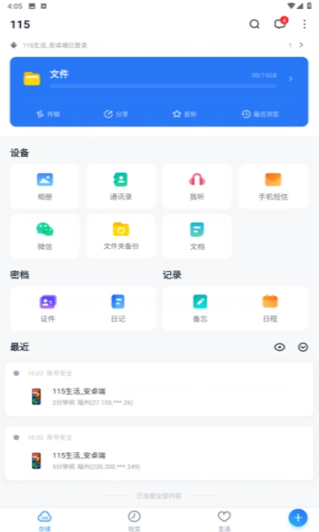 启动115网盘应用后,找到界面底部的“社区”入口并点击,即可进入江湖页面。