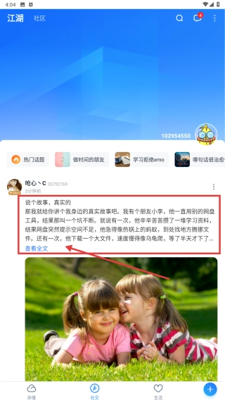 在社区页面里,找到像“说个故事,真实的”这类感兴趣的帖子,点击查看全文来浏览内容。