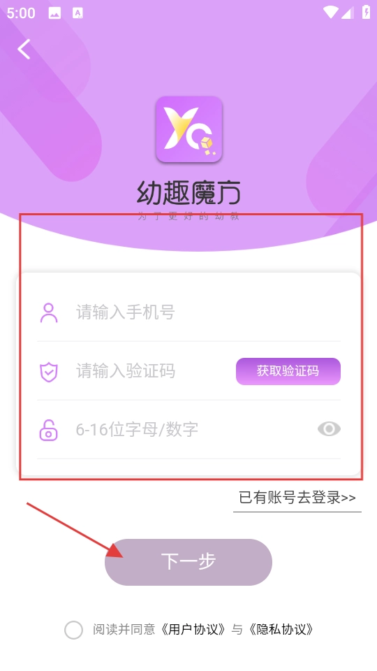在账号创建页面依次输入移动电话号码、系统发送的验证字符以及自定义的登录密码,随后点击界面上的“下一步”按钮,即可完成整个注册流程。
