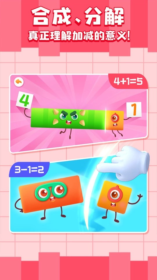 认知直观形象:把数字转化为数字宝宝,借助拖动、划线等互动方式,比如数字精灵吃掉其他精灵合成新数字,使抽象的数字和加减运算变得直观可感,从而降低理解难度。