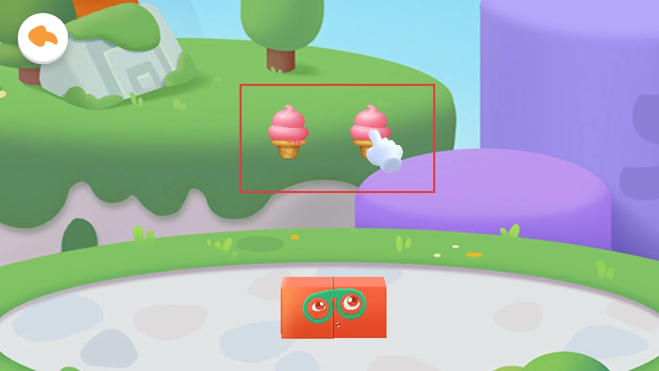 点击合并后的红色方块,让它释放出两个粉色冰淇淋。
