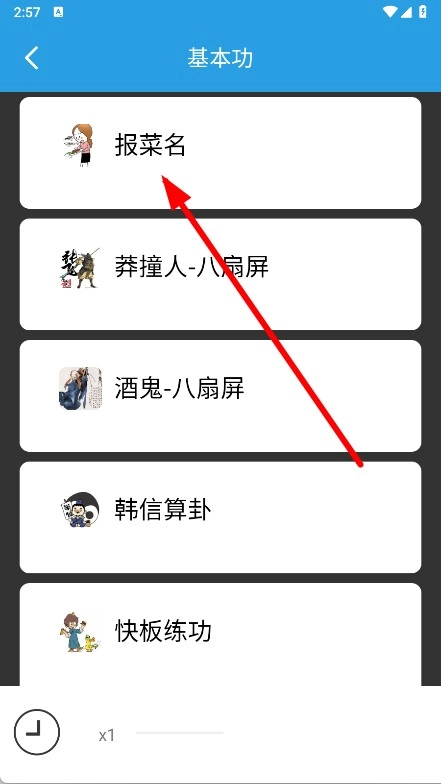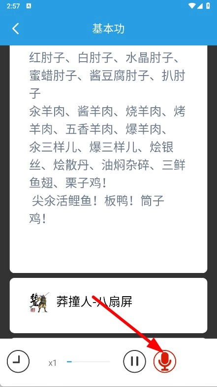 打开报菜名的展示界面后,浏览页面上的文字信息,再点击对应的播放按钮,就能通过听音频来学习相关内容了。