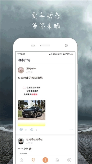 可以分享车辆相关的实时动态,并且能够随时对过往发布过的内容进行管理。
