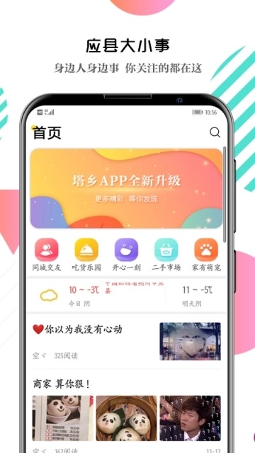 塔乡是一款聚焦应县本地网络文化建设的新媒体社交应用,旨在为用户打造便捷的生活交流场景与贴心的本地生活服务体验。它是一个融合社交、互动与服务功能的即时移动互联平台,用户能在此讨论本地新鲜动态、爆料民生资讯,轻松掌握应县各类大小事务。作为应县本地的“大朋友圈”,用户可以分享照片、记录生活,随时与志同道合的网友畅快交流;还能加入感兴趣的社区,挑选心仪的内容或参与同城活动,在兴趣交友中畅享无限互动乐趣。