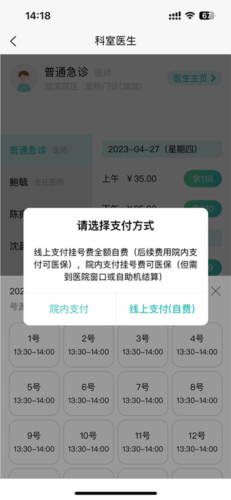 挂号费支持“院内支付”和“线上支付”两种方式;