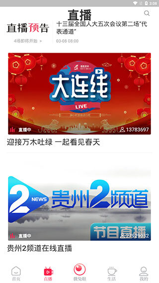 软件设有专门的【直播】页面,这里既展示着各大直播间,页面上方也会呈现直播预告。