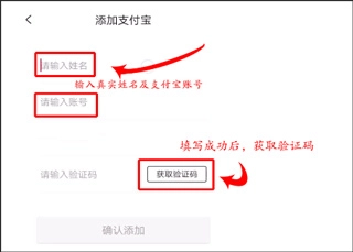 请填写真实姓名和支付宝账号,获取验证码时务必确保信息准确无误。