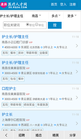 康强医疗人才网是一款非常实用的在线医疗人才招聘平台,医学专业出身的用户可以在这里获取全国各医院的招聘信息,浏览更多医院或诊所的招聘广告。目前已有160万医护人员通过该平台在线求职,平台提供了涵盖牙医、护士、内科医师、口腔医师、整形医师等在内的各类医护岗位,岗位资源十分丰富。