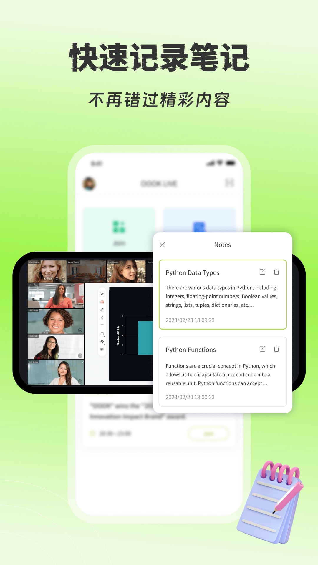 OOOK LIVE是一款整合多种功能的会议工具,旨在增强用户在会议中的互动体验与信息传递效率。该软件除了支持音频互动外,还拥有灵活的布局切换、会议回放观看、会议笔记记录以及实时翻译等实用功能。用户可以在会议中与主持人及其他参会者展开有效沟通,突破时间与空间的局限,推动信息的高效共享与交流。