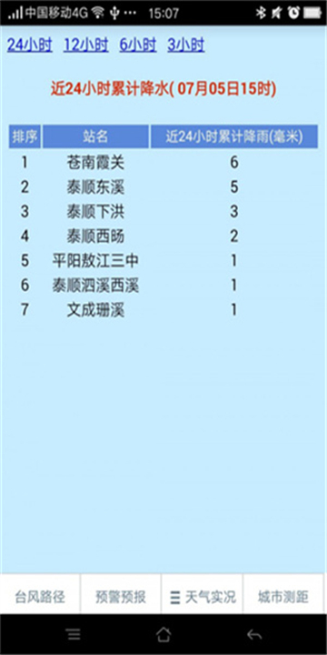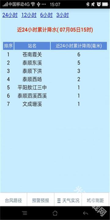 降雨情况:公布温州自动气象站所监测到的过去24小时的累计降雨量数据。
