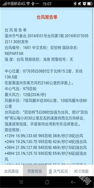 预警预报:向公众发布温州气象台提供的台风天气预报、台风预警、台风报告等相关预警预报信息。
